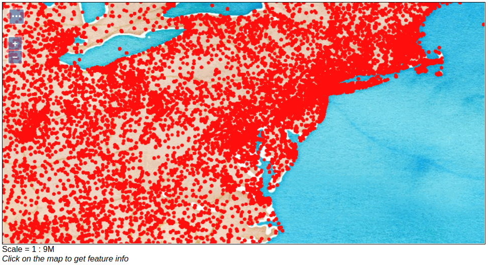 Let’s look at events in the Eastern United States. The default layer preview will return all the data you ingested.